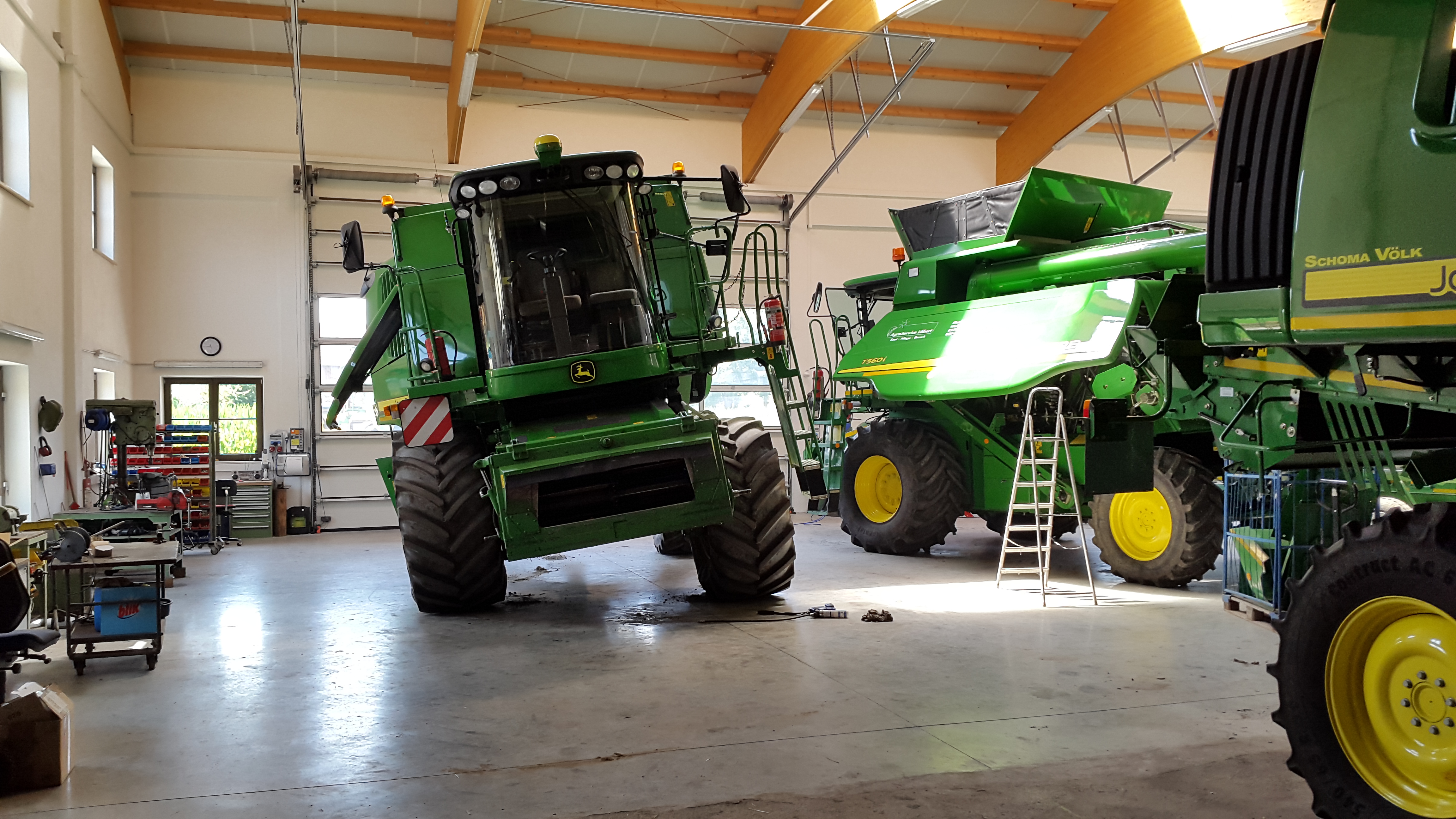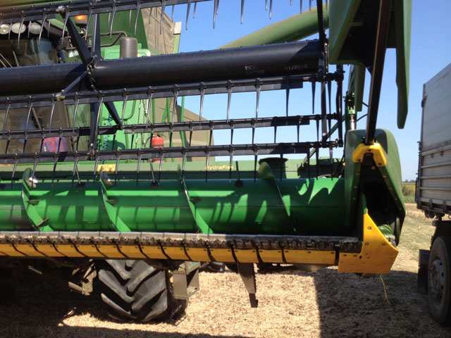 Für die Sojaernte sind wir mit drei John Deere Hydraflex Schneidwerken von 6,7m bis 9m Arbeitsbreite bestens gerüstet. Die Hydraflex-Technik lässt sich durch Variation der hydraulischen Unterstützung des Schneidwerkstisches auf alle Bodenbeschaffenheiten bestens einstellen und ermöglicht so einen problemfreien tiefen Schnitt bei verschiedensten Einsatzbedingungen.